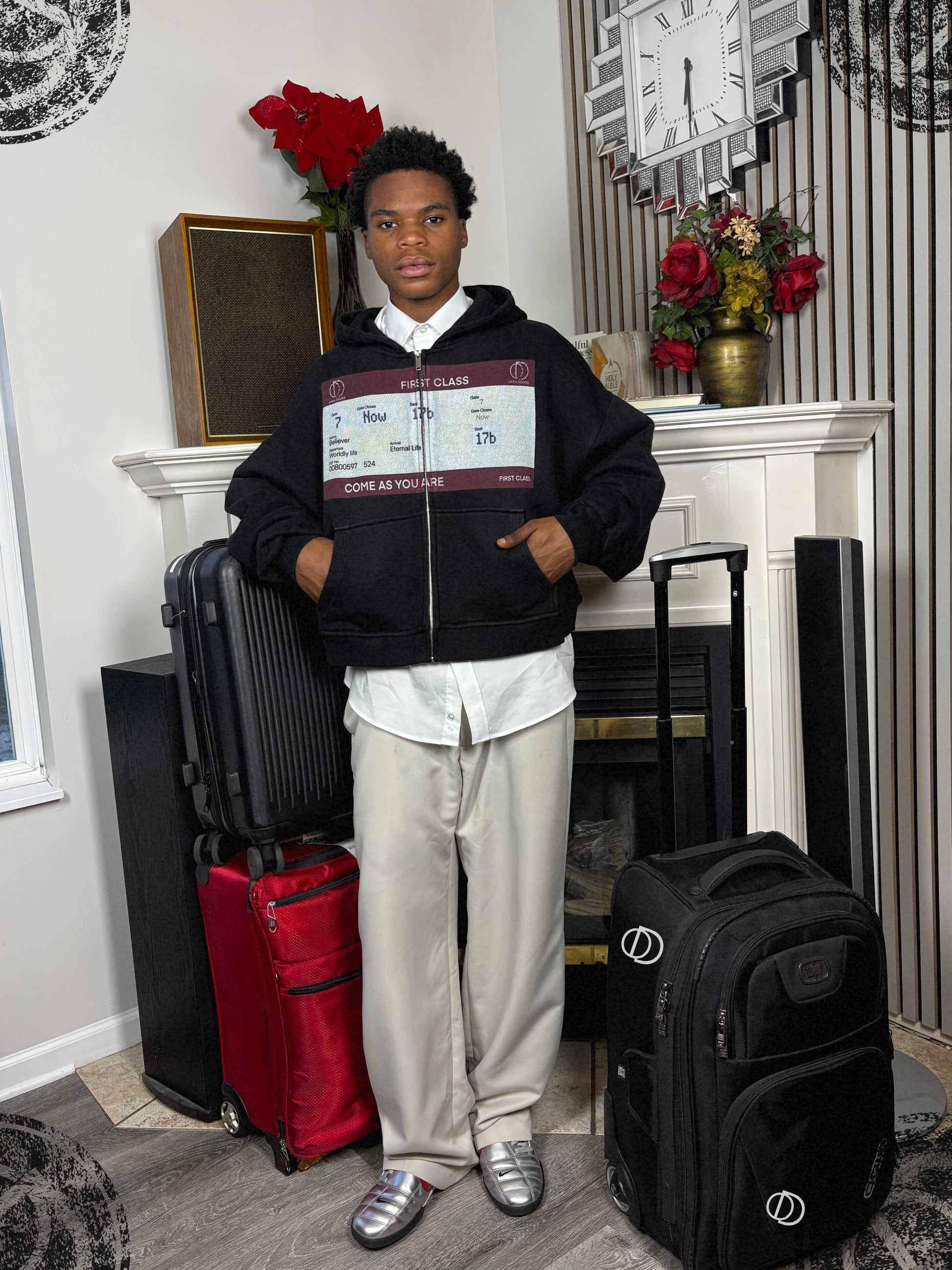 This drop-shoulder zip-up is made from soft French Terry cotton and finished with a slight acid wash on both the front and back. It fits slightly cropped— size up for a more oversized look.